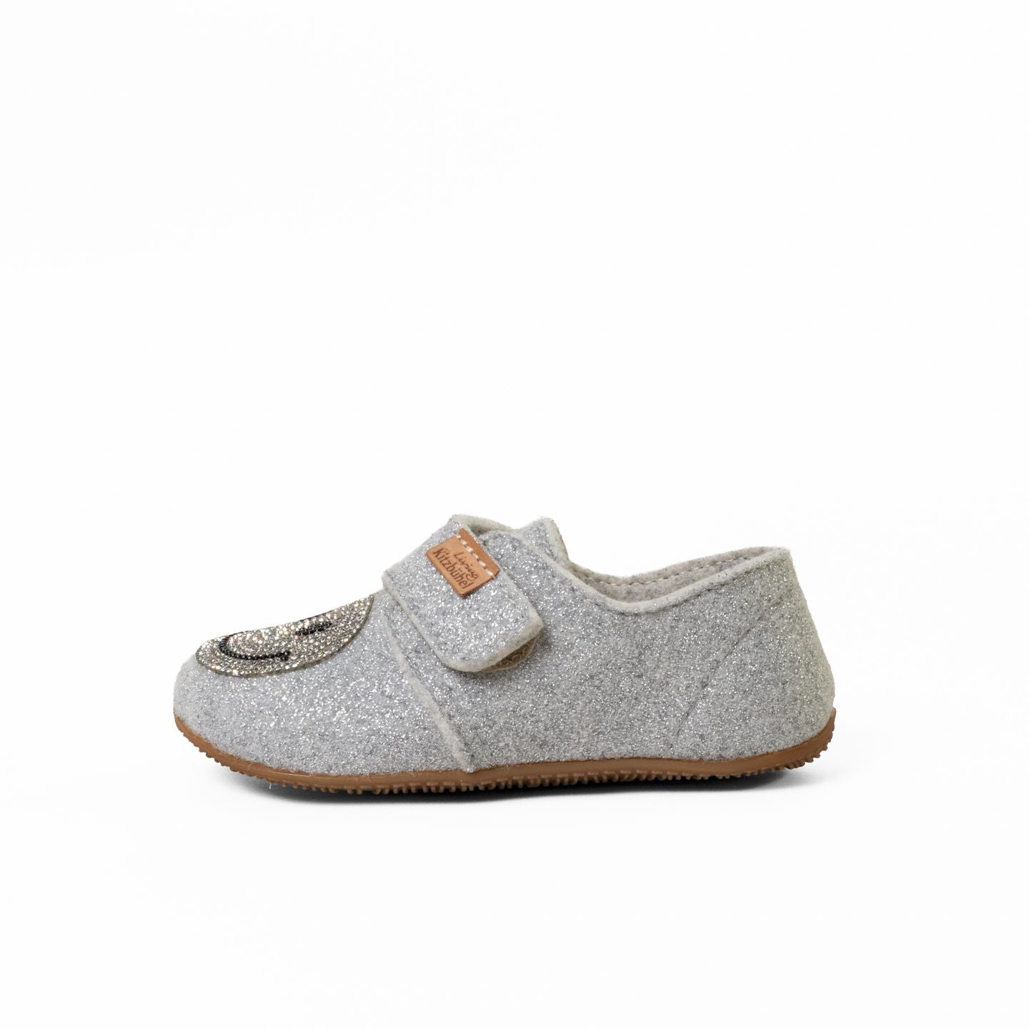 Ein Hauch von Eleganz trifft auf gemütlichen Komfort! Der Grace Glamour Kletthausschuh für Mädchen vereint weichen Filz mit einer funkelnden Glitzer-Smiley-Applikation – für stylische kleine Trendsetterinnen. Dank des praktischen Klettverschlusses lässt sich der Schuh kinderleicht an- und ausziehen, während die rutschfeste Sohle sicheren Halt bietet.